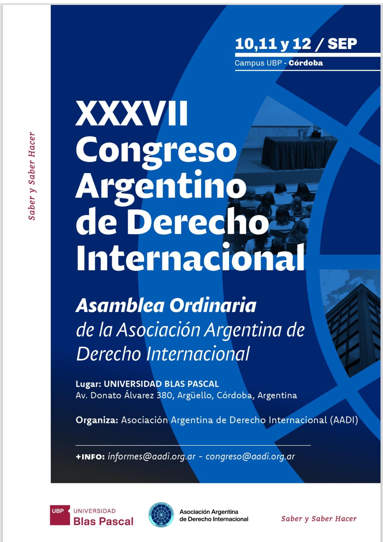 La Asociación Argentina de Derecho Internacional fue fundada en el marco del Primer Seminario de Profesores e Investigadores de Derecho Internacional celebrado en la ciudad de Rosario, República Argentina, los días 3 a 6 de Noviembre de 1968. Es una Asociación de carácter científico, sin fines de lucro, que nuclea más de doscientos docentes e investigadores del derecho internacional de las distintas Universidades del país y cuenta con Miembros correspondientes en el extranjero. La A.A.D.I. funciona como un ámbito para el intercambio de conocimientos científicos, para la producción y divulgación de estudios internacionales. En todo momento la Asociación organiza y auspicia distintos eventos científicos de carácter nacional e internacional en la materia. Su actividad principal es el Congreso Argentino, que se celebra, al menos, cada dos años. Además la Asociación publica un Anuario con artículos científicos vinculados a la problemática actual del Derecho Internacional y un Boletín periódico, con las novedades y temas de interés para sus asociados. Personería Jurídica Resolución Número 761/85. Provincia de Santa Fe.